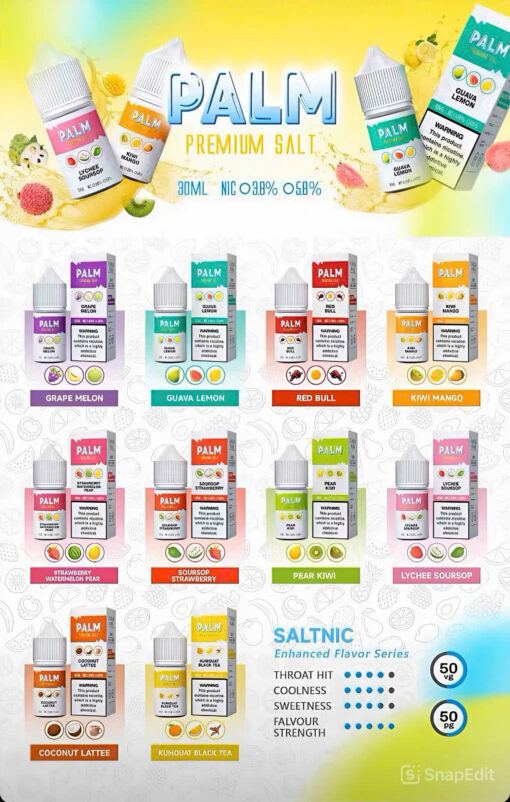 PALM là thương hiệu tinh dầu Salt Nic cao cấp nổi tiếng, được yêu thích nhờ độ mượt, hương vị chân thật và hậu vị sâu. Mỗi dòng tinh dầu PALM đều được nghiên cứu tỉ mỉ để mang đến trải nghiệm hút mượt, lên vị chuẩn và giữ hương lâu – rất phù hợp với các dòng pod system, pod kit.